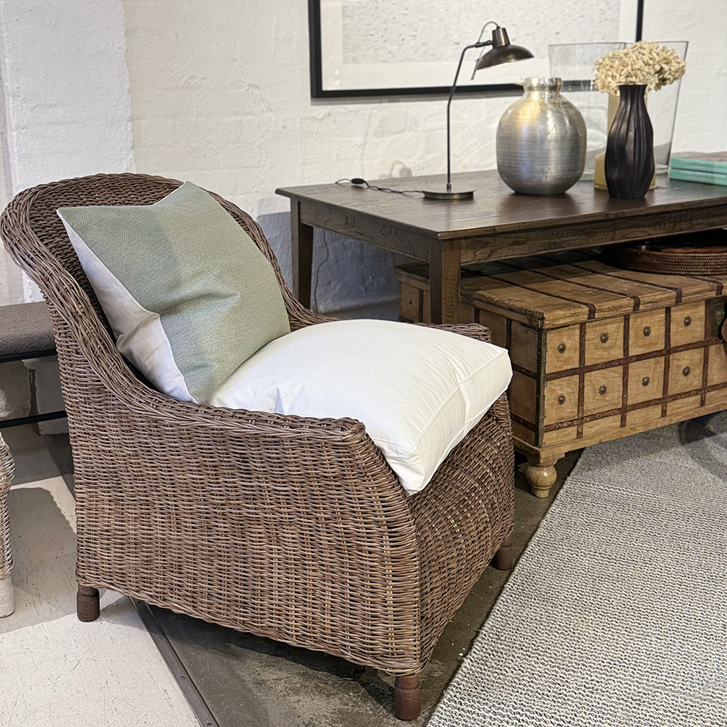 Bring a sense of relaxed seaside living to the lounge, sunroom or covered deck with the Rattan Gable Chair in Pepper. Add calm neutral-toned cushions for that lazy afternoon vibe, or inject some beach life energy with a pop of seasonal colour.