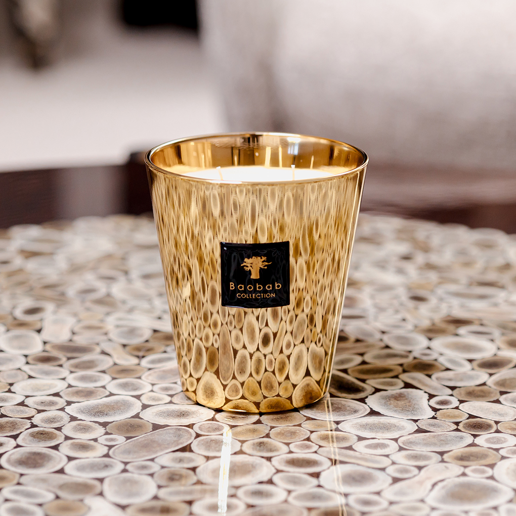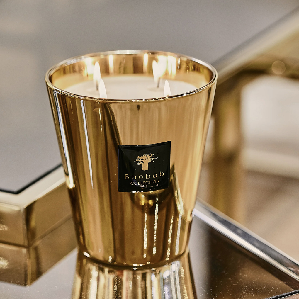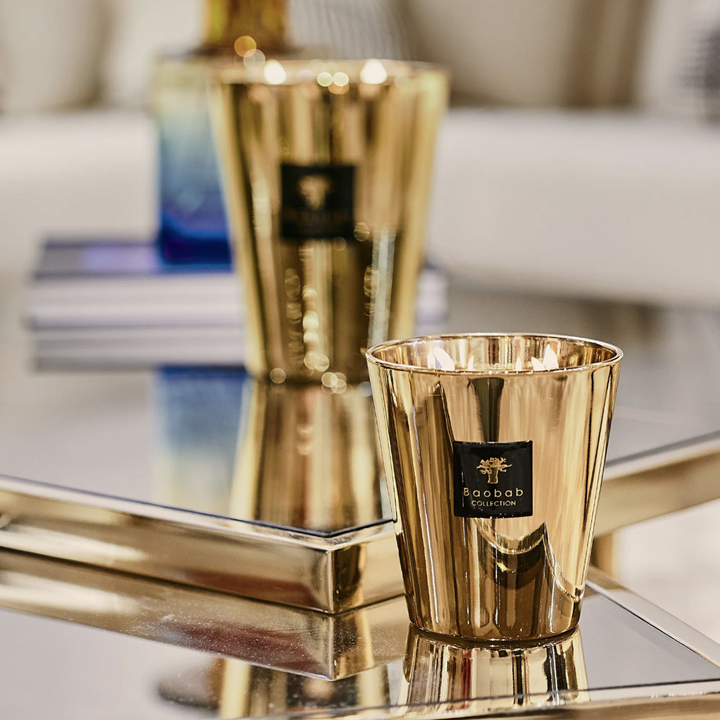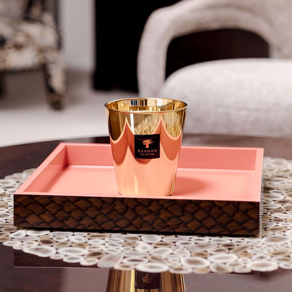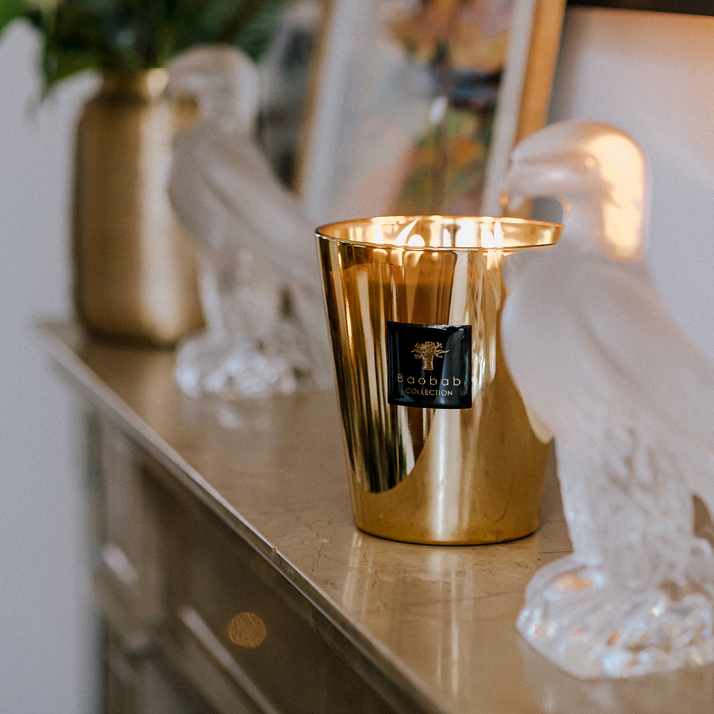A true gem for your interiors, the Aurum scented candle is a magnificent object of decoration. Its glass, yellow gold from the outside and rose gold from the inside, reveals flames that will shine brightly on a celebratory evening in your interiors.