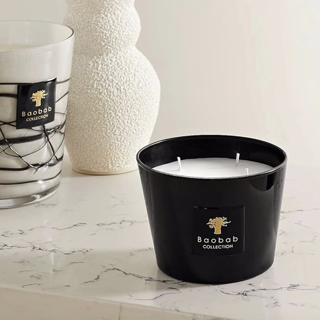 Chinese Ink or Encre de Chine is part of the Les Prestigieuses collection by Baobab. The soft cream wax is hand poured into a beautiful laquered black glass vase. The scent is cool and simple as black ink Oriental writing on crisp white paper. With a base of Century wood, Jasmine keeps it light with a lingering air of mystery. An ideal scented candle for the bedroom.