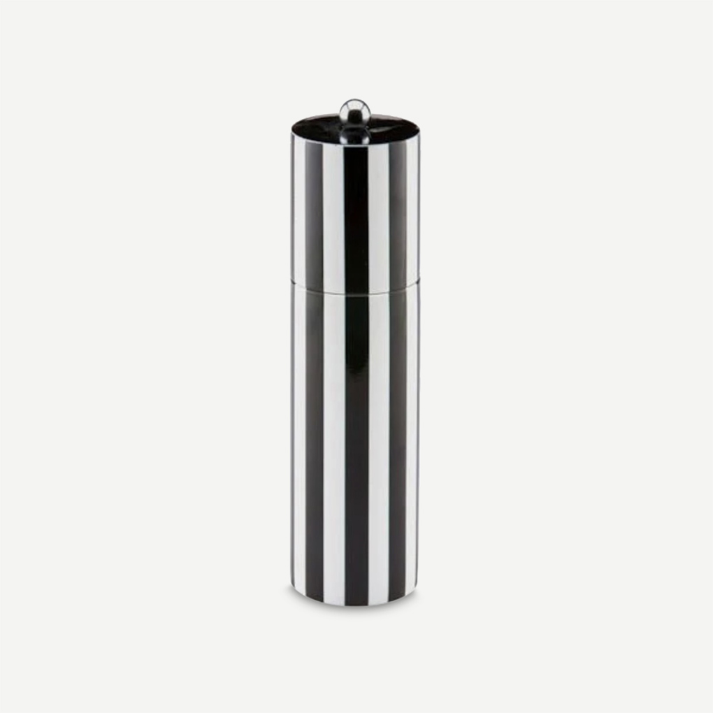 An Addison Ross exclusive design, our Black & White Striped salt and pepper mill is sure to turn heads and brighten up your kitchen. The lacquered round column mill comes with both an S and a P stainless steel screw knob so you can decide for yourself whether you want this to be a salt or pepper grinder.