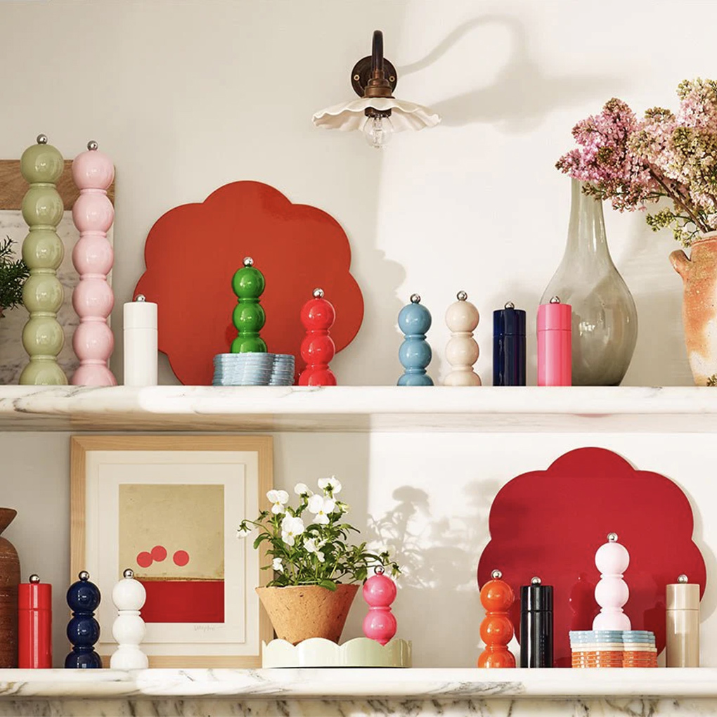 The Leaf Green Lacquered Minibob Mill is suitable for either Salt or Pepper. Featuring our iconic bobbin shape.