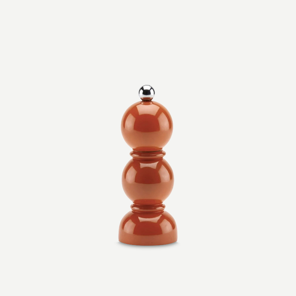 The Orange Lacquered Minibob Mill is suitable for either Salt or Pepper. Featuring our iconic bobbin shape.