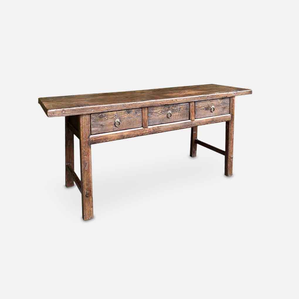 Vintage Butchers console in dark wood finish and 3 drawers. From the Corso Vintage collection.