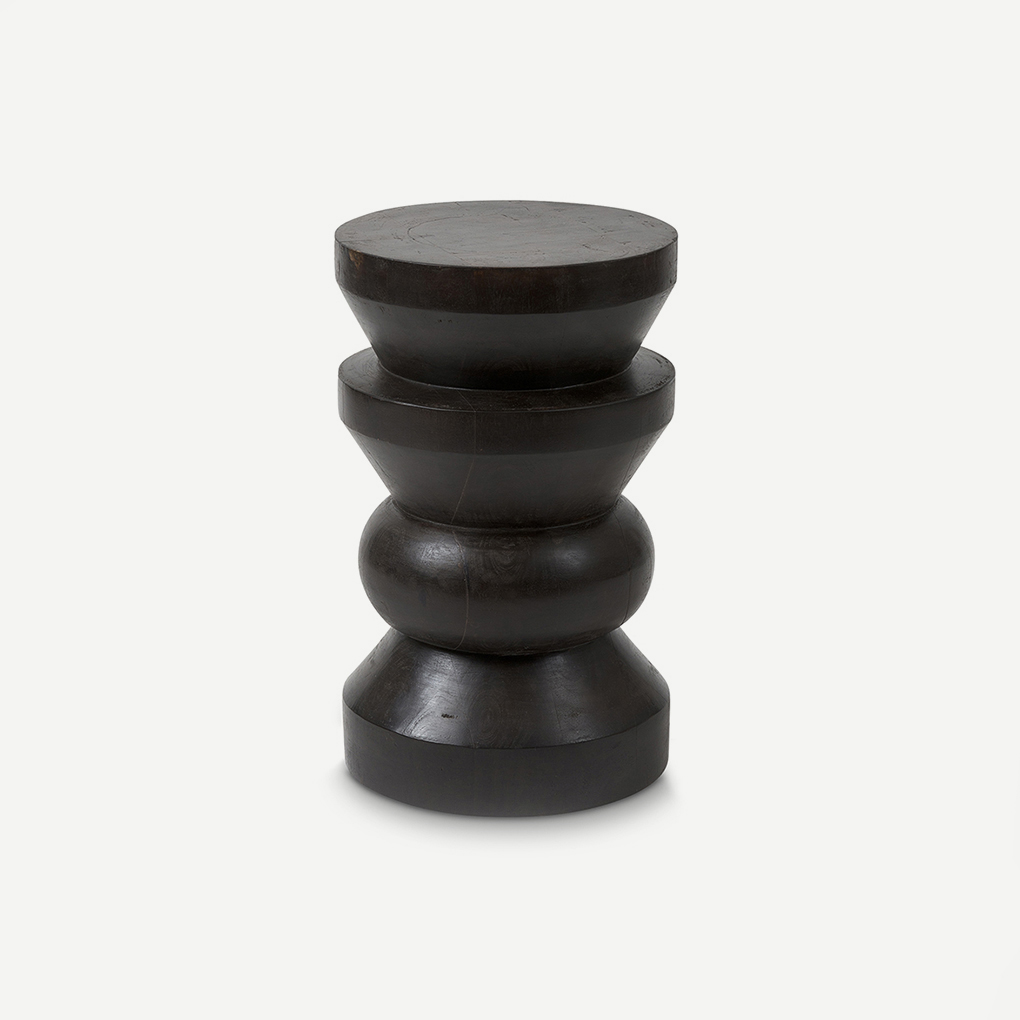 Reminiscent of a chess piece, the dark Wooden Taper Stool creates a striking silhouette.