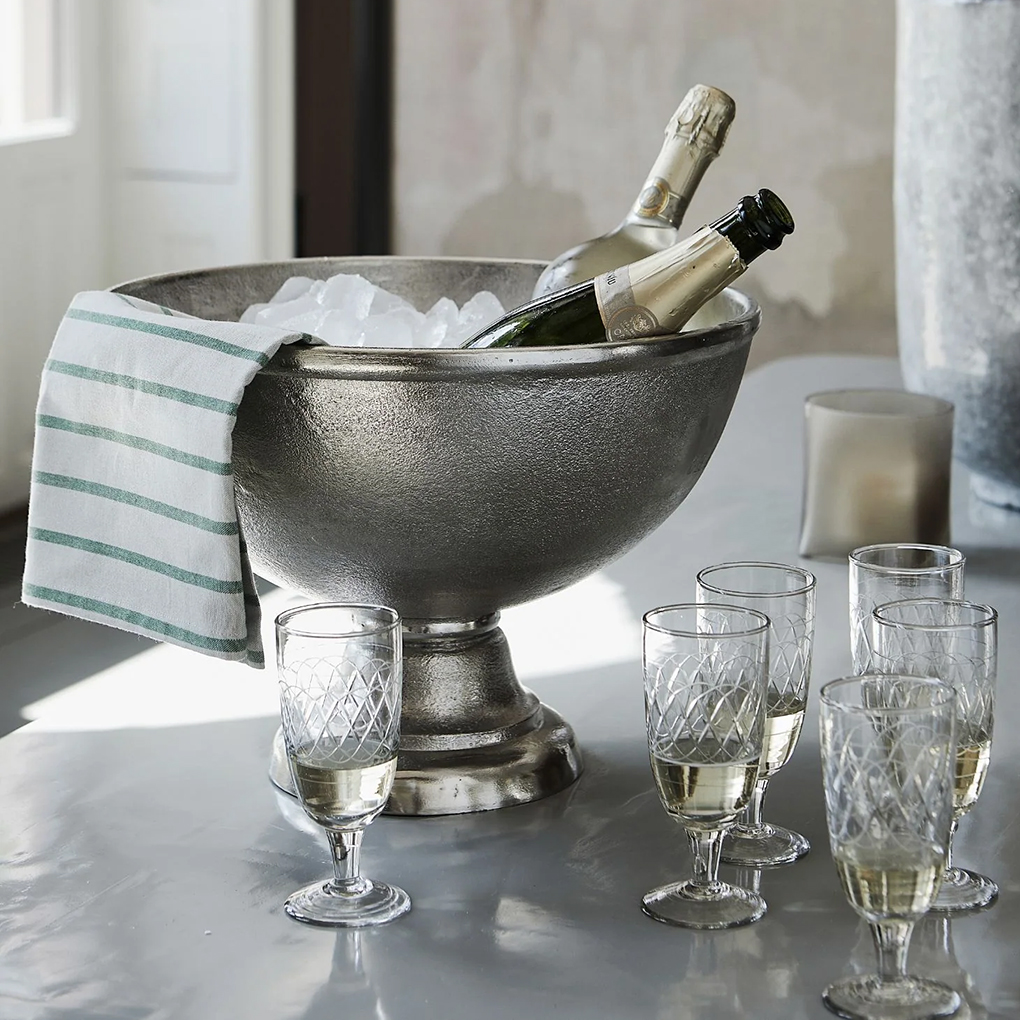 The words Cuvee de prestige champagne decorate this smart wine cooler from House Doctor that goes by the name, Champtub. The wine cooler is made of aluminum and has a cool, sophisticated look. Its design is simple, timeless and rustic at the same time and it will certainly stand out in the modern home. Invite your friends over for a cosy evening with drinks, food and snacks and place this wine cooler on a table. Fill it with ice cubes to keep your wine, champagne and/or beer cold.