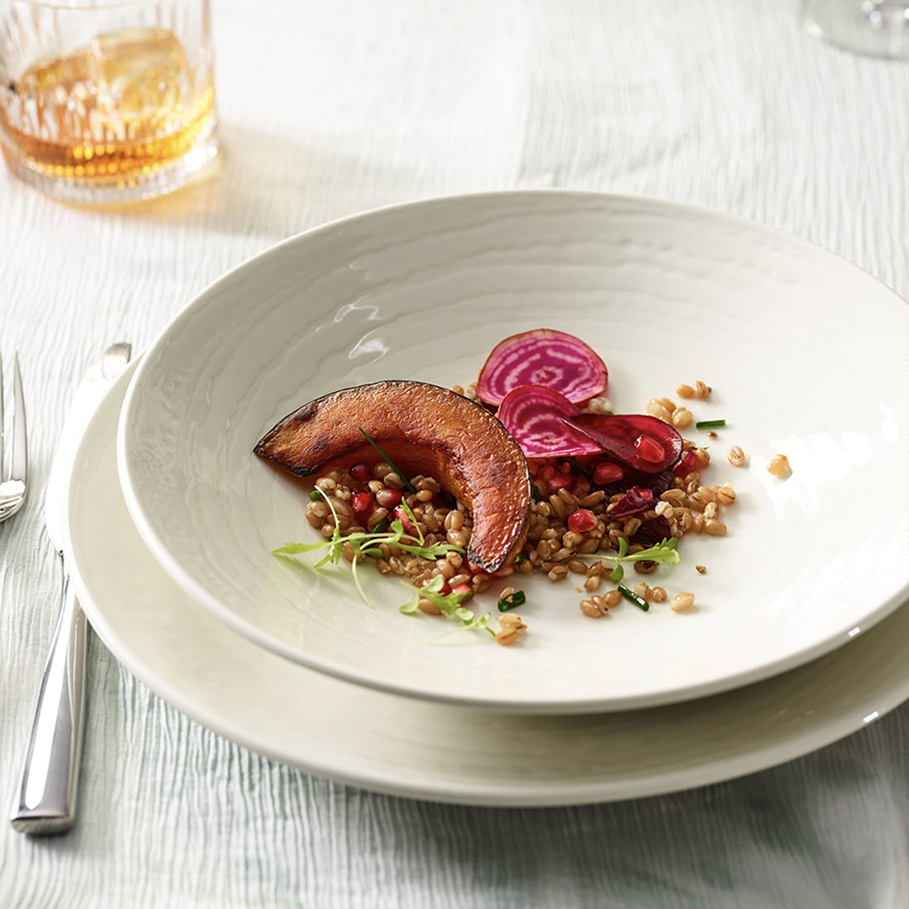 Taking inspiration from living elements of the natural landscape, an exploration of light, and contrasts in form, subtle textures are created and embossed into clay to create the Scape Coupe serveware collection.