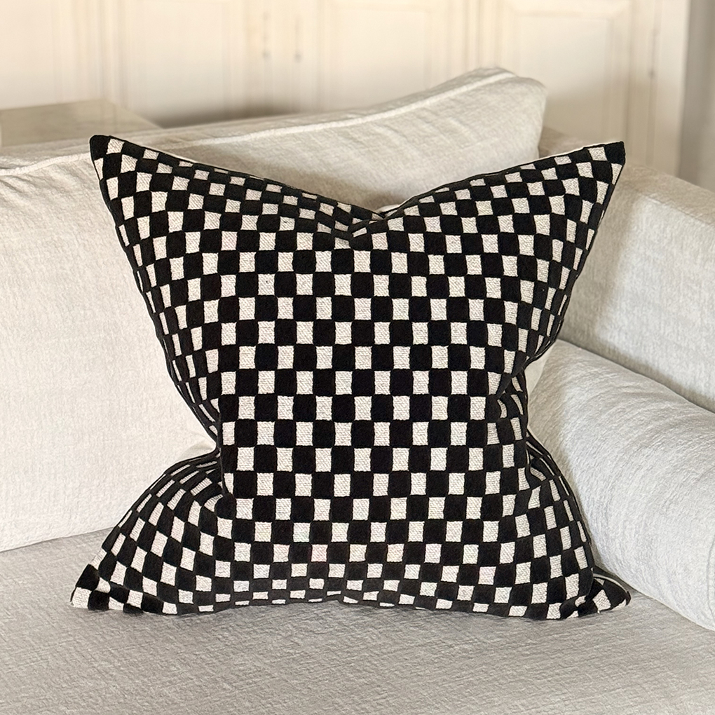 Scacchiera cushion cover in Carbone colour.