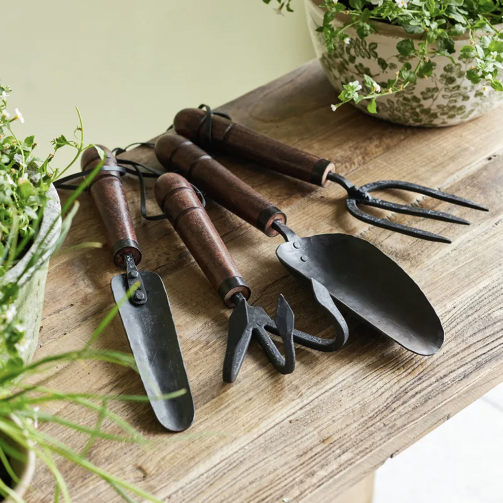 Hand-crafted, vintage inspired gardening tools. Made from iron in a natural black finish and stained mango wood handles. Hand-crafted, vintage inspired gardening tools made from quality iron in a natural black finish with solid mango wood handles, giving you years of use and enjoyment in the garden.