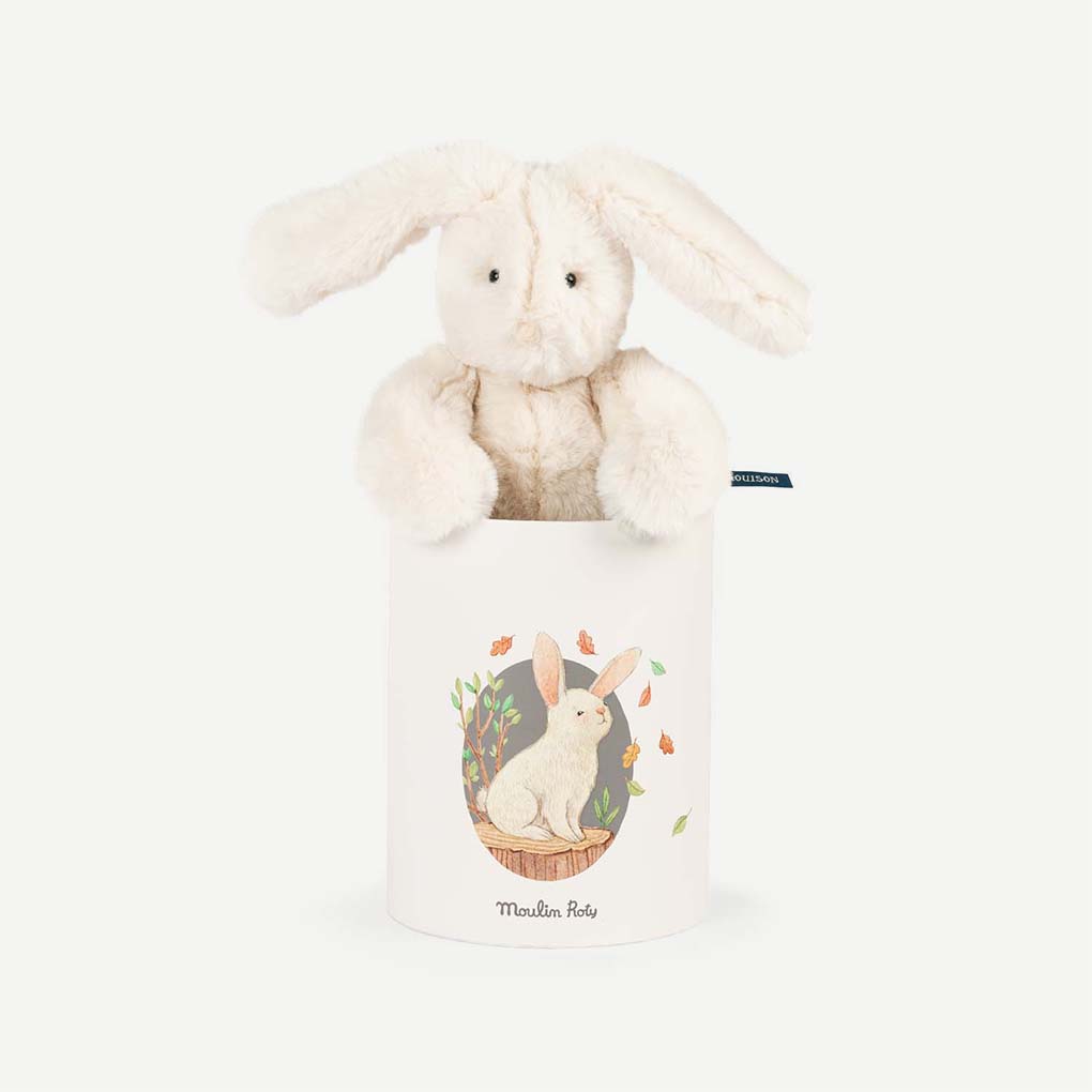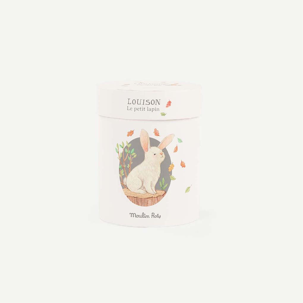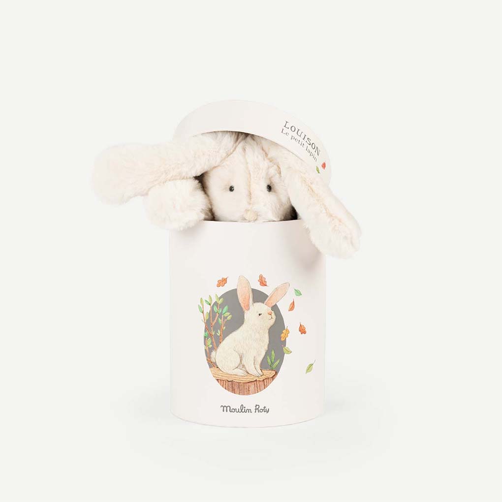 A cuddly, soft, and fluffy bunny perfect for extraordinary hugs! Its ideal size for little arms makes it easy to take anywhere. Louison Rabbit waits patiently in a beautifully illustrated, round box.