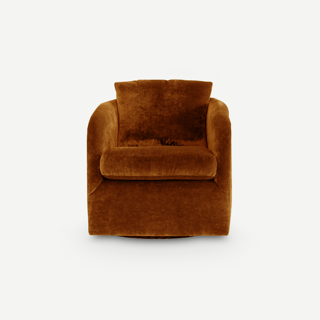 The elegant Maple chair mixes timeless curved club chair comfort with contemporary style on a swivel base.