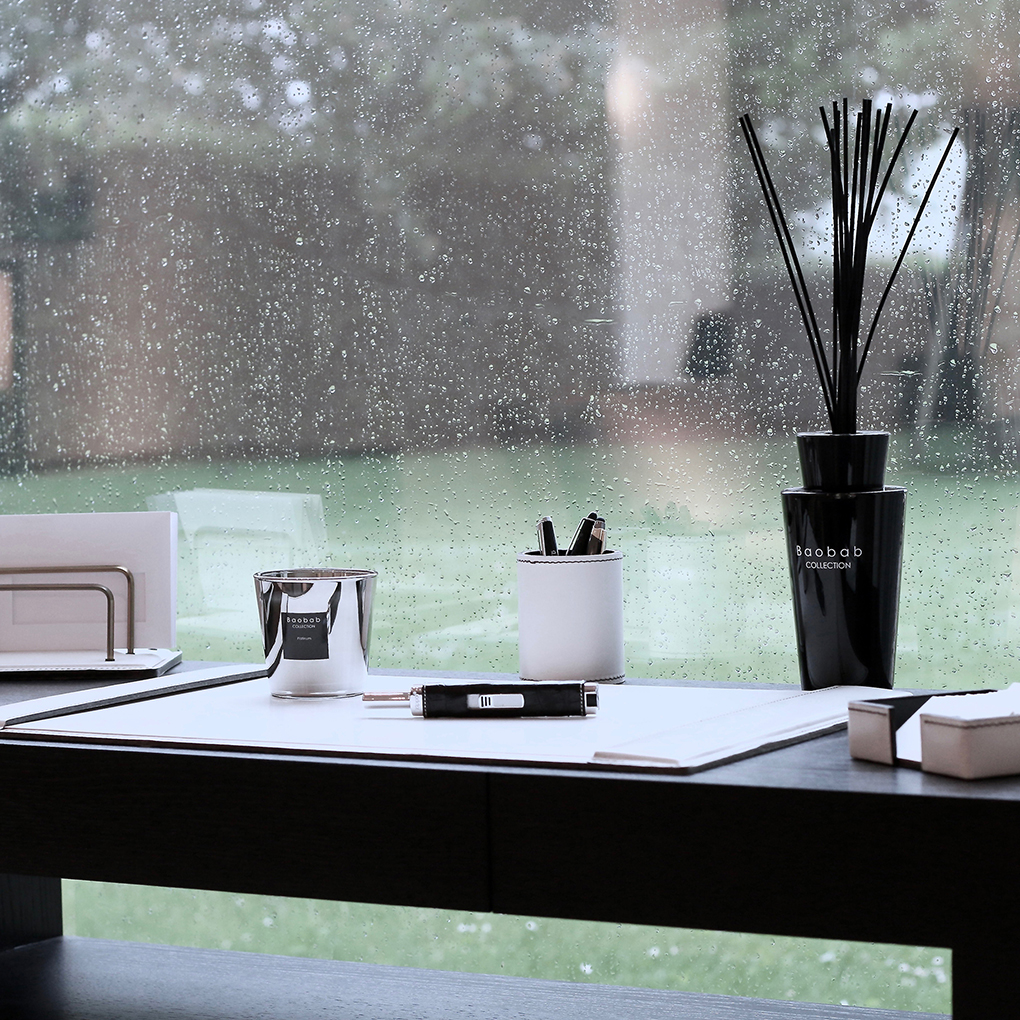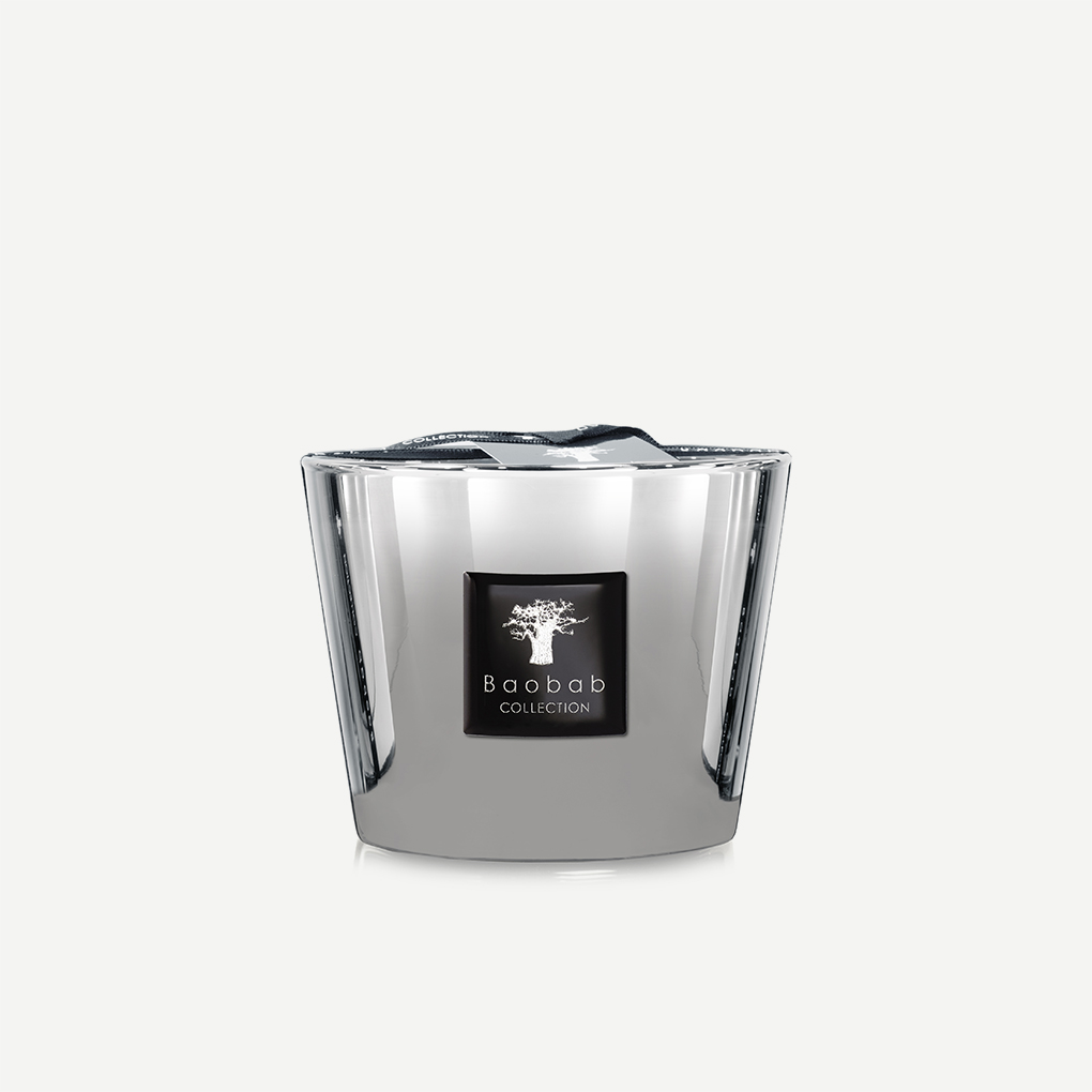 This Baobab Platinum scented candle is presented in a platinum plated casing. The aroma is full of fresh grapefruit, fused with scents of amber in hand poured white wax, which offer a warm and relaxing fragrance.