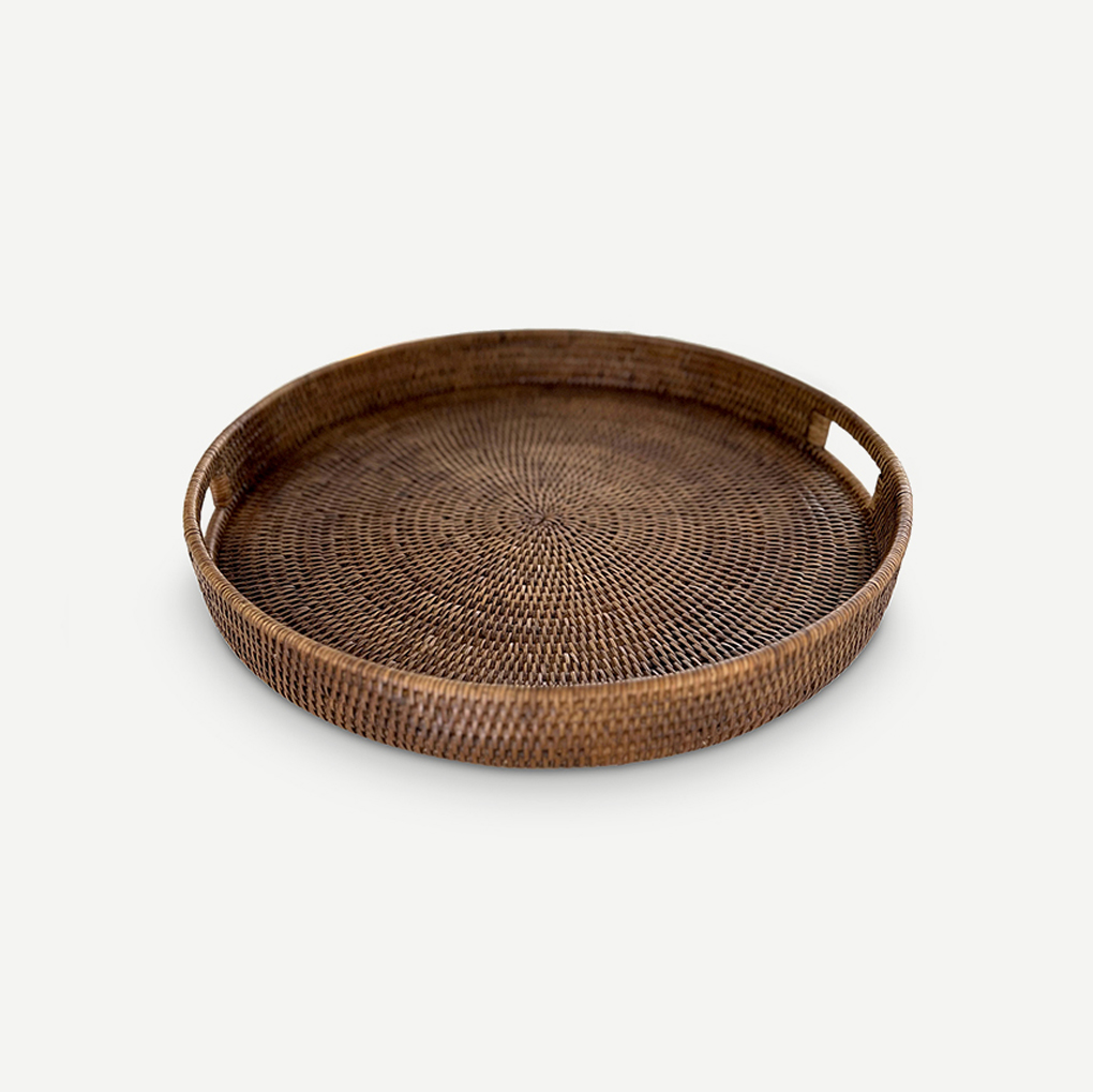 The Linear round tray mixes timeless rattan with clean, contemporary lines and cut-out handles.