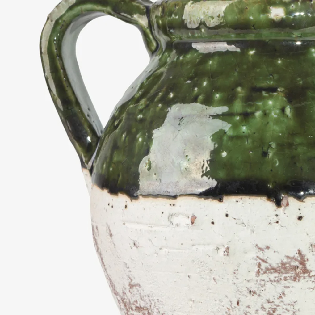 The Small Romano Jug is a stunning handmade terracotta piece, blending natural earthy tones with a glossy dark green upper finish. Its unique design makes it a beautiful and versatile addition to any interior space