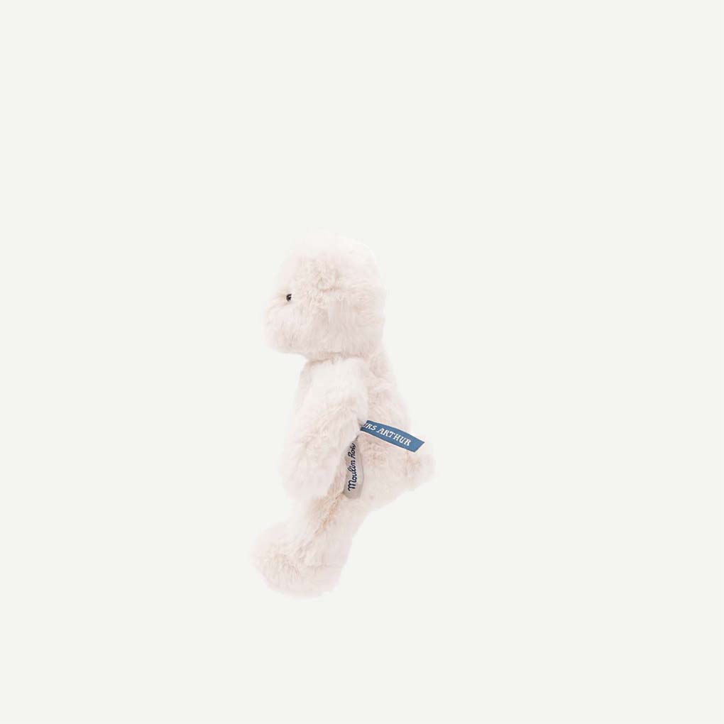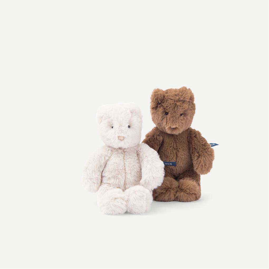 This utterly adorable little bear with its soft, creamy fur is called Arthur. With his small snout, big paws, and round ears, he’s the perfect cuddly companion. Easy to grab, he’ll be a little one’s best friend. (Oeko-Tex certified fur)