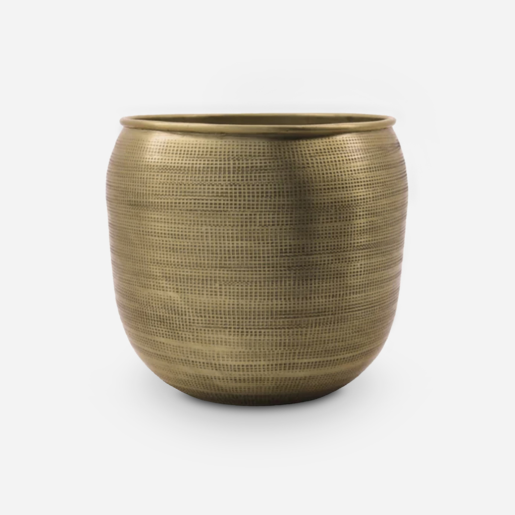 Add a touch of elegance and warmth to your home decor with these handmade aluminum planters. The antique gold finish and beautiful embossed pattern give the plants a unique and artistic expression. They Come in two sizes, perfect for both green plants and flowers and can create an inviting atmosphere in the living room, on shelves or on the window sill.