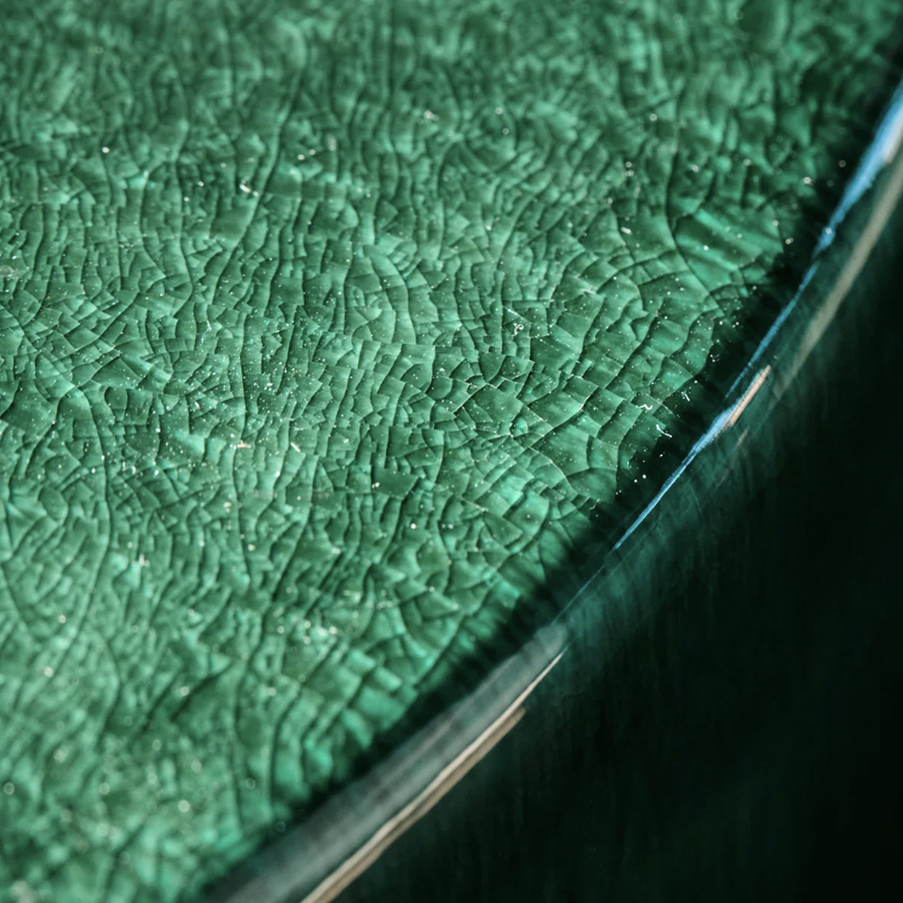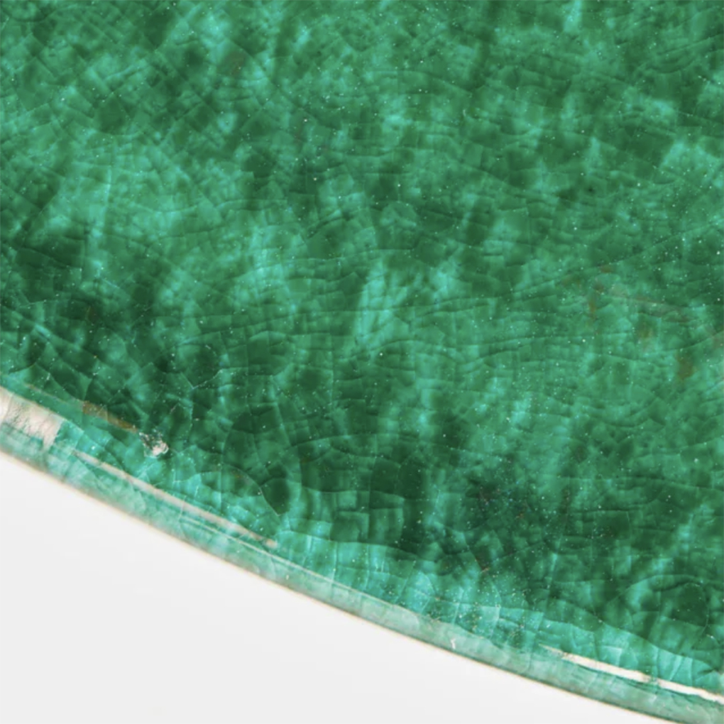 – Glossy, varied green glaze.
