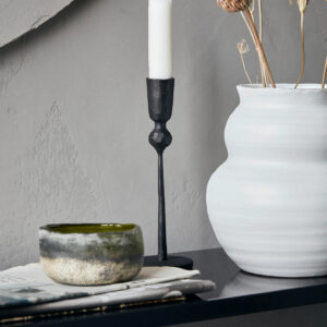Understated elegance best describes this candlestick called Trivo. It is handmade from iron and House Doctor has given it a look that creates a good balance between the heavy, black material and the elongated shape. This stand is the smallest in the Trivo range, which comes in 3 sizes. Place a couple of them together on the windowsill and mix the heights to complete the look. Another option is to create a unique still life in combination with a glass vase to highlight the quality of each material.