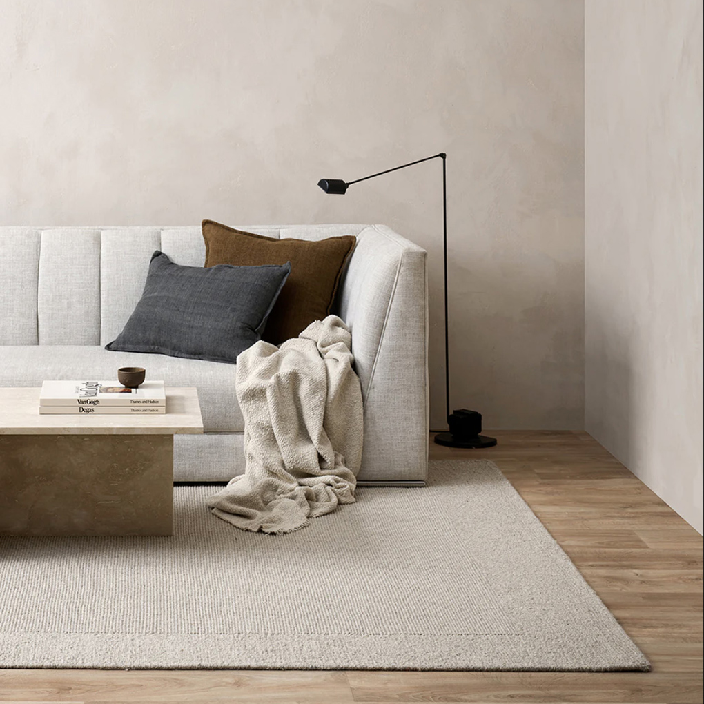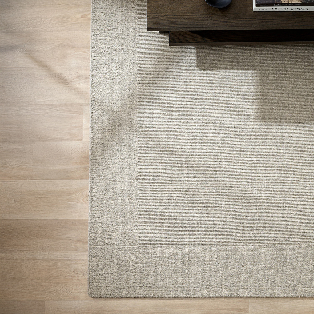 Create a natural, refined interior with the beautifully pared-back design of the Vermont rug. Tightly woven from 100% wool, the finely ribbed construction adds a textural underfoot feel, while the low-profile design is perfect for dining rooms and areas of high traffic. Finished with a subtle border, the warm, natural tones instil a contemporary and inviting ambience.
