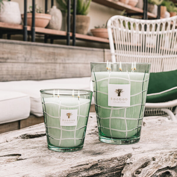 Looking for a beautiful candle design? This sophisticated candle with a lemon tree scent has been decorated with an engraved motif by our artisans. The wave patterned candle Nazaré is an object of beauty. In a subtle, pale lime green, is a decorative object, a citrus leaf, tonka bean and peppermint candle.