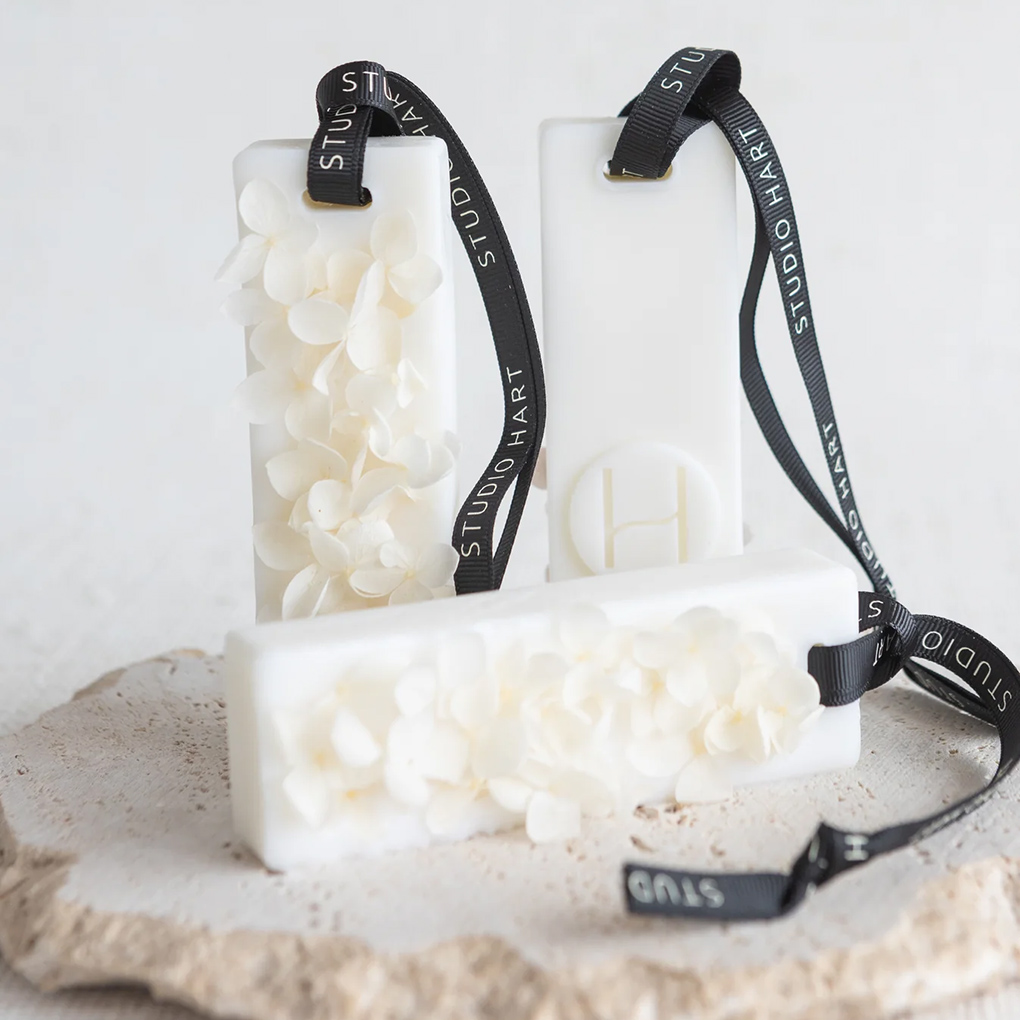Handcrafted from solid plant-based wax and finished with botanical elements, Burnt Cashmere is designed to scent your space with quiet confidence. Whether tucked into drawers, nestled in wardrobes, or hung from its sleek black ribbon in your favourite corner – this wax tab turns any corner into a sanctuary of depth and character.