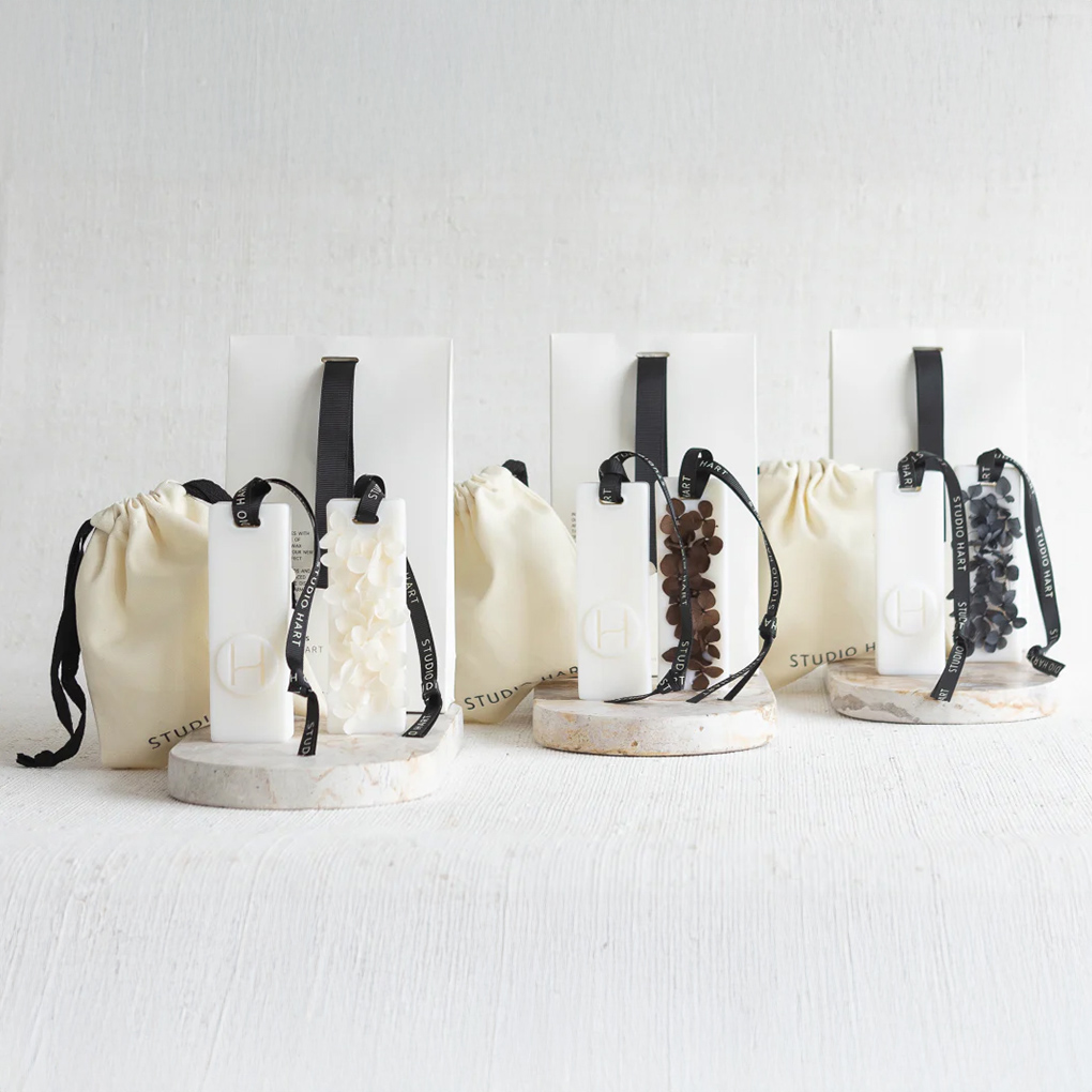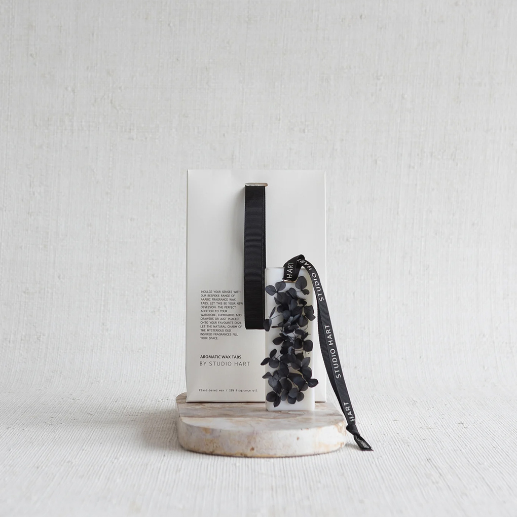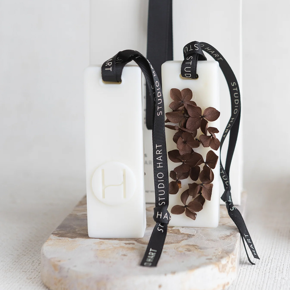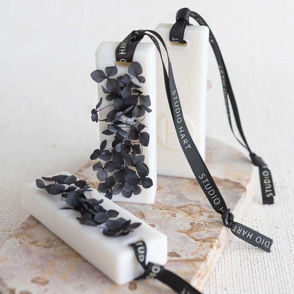 Handcrafted from solid plant-based wax and adorned with botanical accents, Velvet Wood is designed to gently scent your space while adding a refined touch of nature. Whether tucked into drawers, nestled in wardrobes, or hung from its sleek black ribbon in your favourite corner – this aromatic tab transforms any nook into a sanctuary.